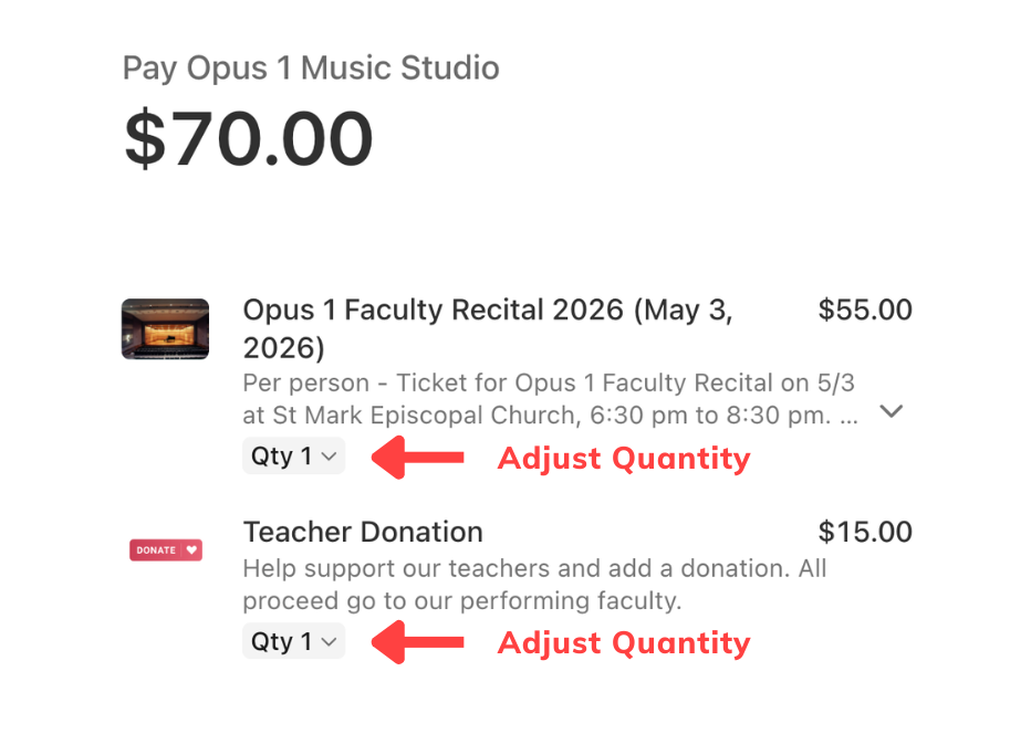 To pay only the ticket price, please select a “zero” quantity in the Teacher Donation dropdown.